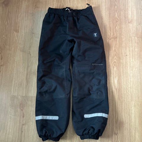 Myyntiin kuvan housut. Laitoin hyvän kunnoksi koska ei ole mitään muuta kuin polvien kohdalla pinttynyttä likaa, kaikki saumat ja peppu on ehyitä, myös polvet, mutta en lähde pesemään koska turhaa kuluttaa vedenpitävyyttä näistä turhaan. Nimikointi sutattu pois. Koko 152. Ja musta väri.