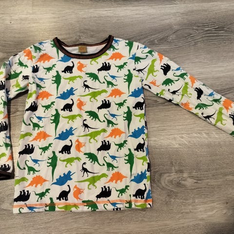 Söpö ja hauska oloasu. Meillä tuo meni dinosauruksesta. Kokolappu leikattu irti mutta muistaisin asun olevan 116cm. Kaula-aukko haara pituus 53cm. Lahkeen sisäpituus 40cm. Takana tarralla kiinnitettävä häntä. Ehjä!