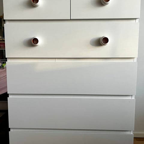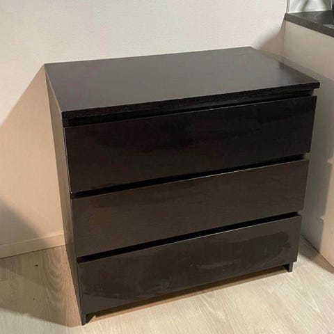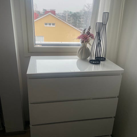 Korkea malm lipasto. Leveys 80cm, korkeus 100cm. Edessä alhaalla halkeama joka ei ole vaikuttanut käyttöön, katso kuva, ja pieni kolhu kannen kulmassa, muuten siisti ja hyvä kuntoinen. Huomioitu hinnassa!
