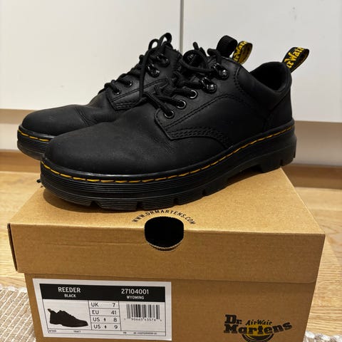 Dr. Martens tennarit, koko 41. Mustat nauhalliset tennarit, joissa korkea varsi ja vaalea paksu pohja. Sopivat arkeen ja vapaa-aikaan. Materiaali vaikuttaa sileäpintaiselta, tarkempi koostumus ei tiedossa.Voin postittaa.