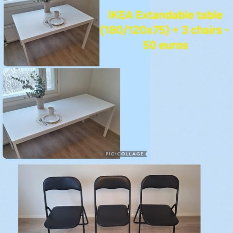 Myydään tumman ruskea jatkettava ruokapöytä, 50€. Mustat metalliset jalat. Korkeus 74cm, leveys 120cm (jatkettuna 180cm), syvyys 75cm. Hieman painava. Omat kantajat mukaan. Maksu käteisellä tai mobilepaylla. Sijaitsee Joutsenossa, Lappeenrannassa