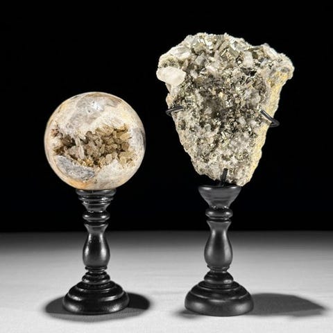 EI VARAUSHINTAA - Upea kvartsikidepari Pallot räätälöidyissä telineissä. -