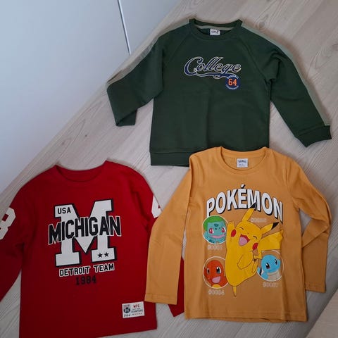 Myydään hyvässä kunnossa olevat paidat (Minecraft,Pokemon, Super Mario) kooltaan 122/128 (värikäs pokemon paita koko 122) Mielellään kaikki kerralla.