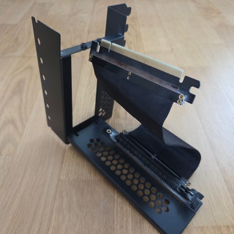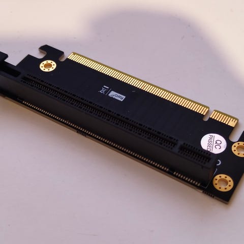 PCIe 4.0 riser-kaapeli tietokoneeseen. Musta, taipuisa jatkokaapeli.