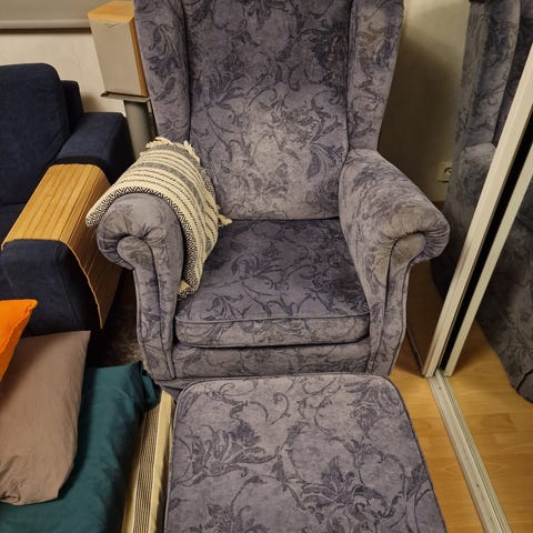 Nojatuoli, sohva, tarjotin, puutabletti, tarjoilutabletti, sisustus.