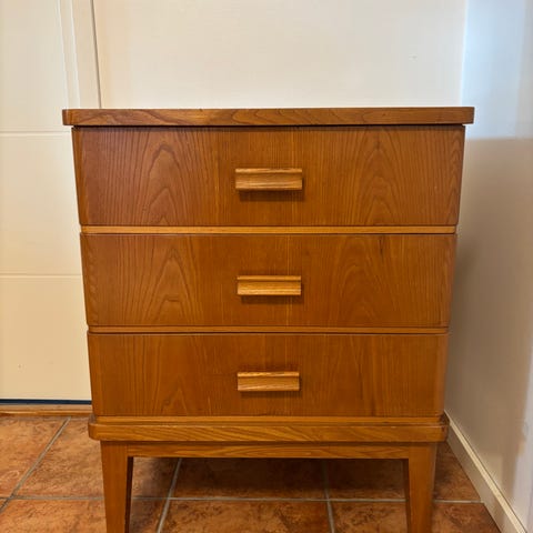 Tyylikäs 50-luvun vintage lipasto myytävänä. Kunto ikäisekseen hyvä. Avain tallessa lukot toimivat avainta painamalla hieman alaspäin käännettäessä. Runko kaikin puolin tukeva. Vetolaatikoiden sisällä jälkiä, ei hajuja.