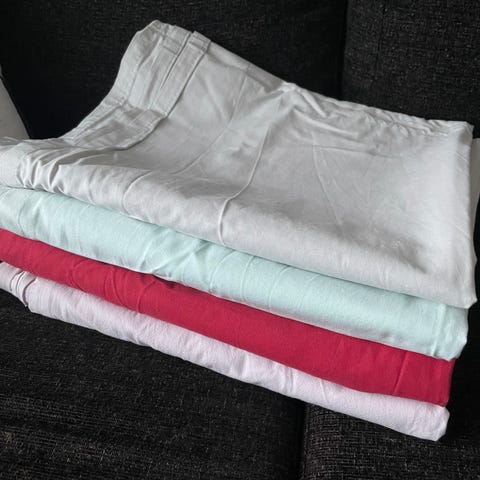 Kaksi vaaleansävyistä My Home aluslakanaa, materiaali 100 % puuvillaa. Yhteishintaan 5e.