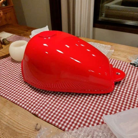 Mukana kaasukahva, sähköstarttinappi, tööttinappi, vilkkukatkaisin, kytkinkahva ja valonkatkaisin