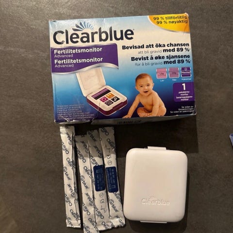 Myydään Clearblue hedelmällisyysmonitori. Ostettu syksyllä 2025. Toimii moitteitta. Kannessa vähän punaista hiusmaskia tarttunut, mutta ei muuta vikaa. Mukaan 17 ovulaatiotikkua ja 6 raskaustestitikkua. Hinta paketille 75€, ovh. näille n. 200€. ToriDiili/postitus tai nouto Iistä Oulun seudulta.