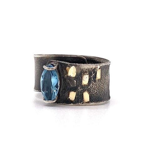Tämä sormus on peräisin rajoitetusta Mosaic-Edition -kokoelmasta, suunniteltu ja valmistettu Alexandra Steinforthin (Ale jewels) toimesta, koru- ja taidealan lisenssillä. Se on täysin käsityötä ja käsin veistetty, ja se yhdistää teksturoidun hopean luonnollisen helmen kanssa toisen osan 18 karat kultayksityiskohtia. Se on nykyaikainen, monikäyttöinen design, ihanteellinen mille tahansa tilaisuudelle ja taidekorujen sekä jalokivien ystäville – ainutlaatuinen ja korvaamaton. Etupinnan enimmäisleveys on 11 mm, ja sormus on säädettävä peruskooltaan 17.Toimitetaan sertifioituna ja vakuutettuna seurantanumeron kera, mukana lahjapakkauksessa ja taiteilijatiedot, jotta se saapuu turvallisesti vastaanottajalle.