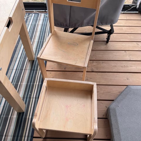 Lasten puinen pöytä ja kaksi jakkaraa, joissa maalatut Nalle Puh -aiheiset kuviot. Pöydän kannessa on useita hahmoja ja jakkaroiden istuinosissa vaaleanpunainen hahmo. Sarja sopii esimerkiksi lastenhuoneeseen tai leikkitilaan pienen pöytäryhmän tarpeisiin. Materiaalina on lakattu tai käsitelty puu, ja kalusteet ovat kevyitä siirtää. Pöytä ja jakkarat on mitoitettu lapsille.