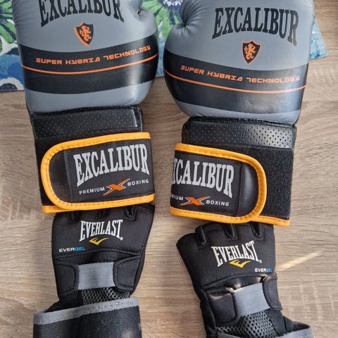 Excalibur nyrkkeilyhanskat ruskeaa nahkaa. Hanskoissa tarrakiinnitys ranteessa ja pehmustettu rakenne nyrkkeilyyn tai kuntonyrkkeilyyn.