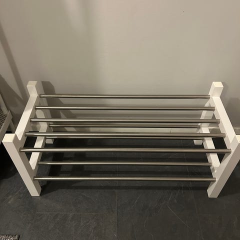 Kenkähyllynä toiminut metallinen hylly. Putsataan vielä ennen myyntiä.