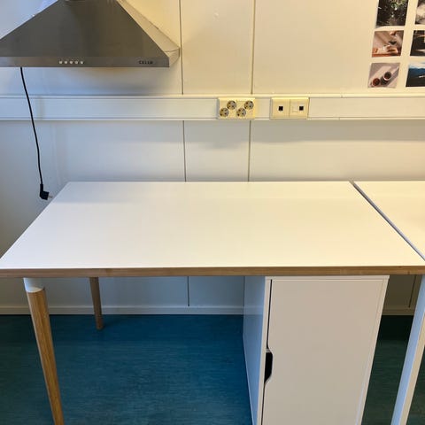 Annetaan valkoinen pöytä, metalli jalat.
