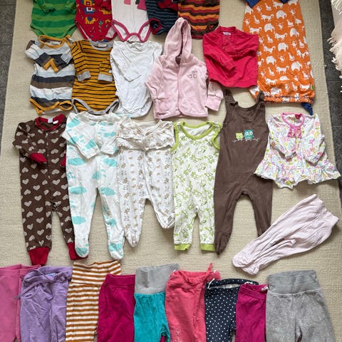 Myyn kuvassa olevat työn käytössä olleet vaatteet pakettina. Vaatteet kokoa 74-80 cm. Kaikki siistejä ja hyväkuntoisia.