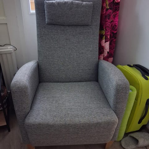 IKEA nojatuoli musta keinonahka harmaa istuinletti