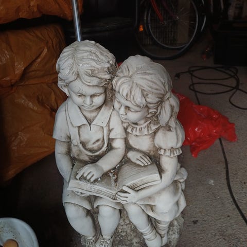 Puinen peikko pariskunta, vanha, nahka vaatteet, ym. 40e.tarjous. Sijaitsee Salossa.