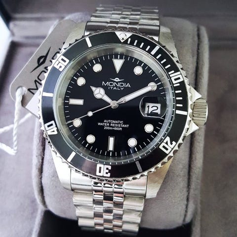 Uusi. Vähittäismyyntihinta 490 euroa. Tätä eksklusiivista mallia ei ole myynnissä missään muualla maailmassa.Olemme jalokiviliike, joka myy vain uusia, eksklusiivisia tuotteita. Kaikilla tuotteilla on täysi virallinen takuu. Asiakirja allekirjoitetaan ja leimataan omalla jalokivitiimiltämme.Ainutlaatuinen kellonmerkiltä Mondia. Tunnettu sveitsiläisestä perinteestään vuodesta 1935 lähtien; heillä on pitkä historia sveitsiläisistä kelloista.Kellossa on laadukas automaattikoneisto Seikon valmistama, päivämäärätoiminnolla ja 24 jalokiveä. Tämä mahdollistaa erittäin tarkan liikkeen.Erityinen Bull Crown -kruunu tämän rajoitetun erän kellon yläosassa.Kotelon materiaali316L terästäNauhan materiaaliitalialainen nahkaKoneistoAutomaattinen, 24 jalokiveä, SeikoKruunuBullRajoitettu eräKylläPäivämäärätoimintoKylläKellotauluErikoisrakenteinen tekstuuriKristallin materiaaliVahva mineraalilasiKotelon läpimitta43 mmExtraErikoiset Mondia Bolide -laatikot sekä asiakirjaToimitus vakuutettuna ja Track & Trace -seurantanumerolla.Kaikki uutta.
