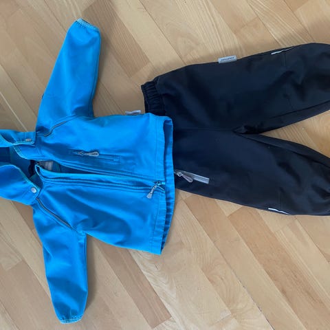 Helmassa kiristyskuminauha. Ja hihoissa tarrat ja resori