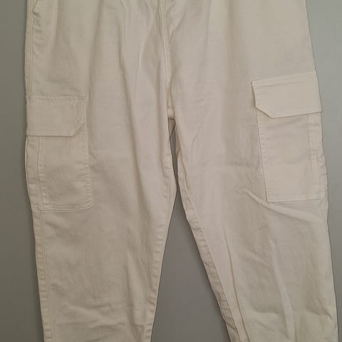 Myydään uudet, muodikkaat naisten reisitaskuhousut. Väri khakin vihreä. Koko 50. Housussa on kaksi avointa etutaskua, kaksi reisitaskua ja kaksi vetoketjullista takataskua. Vyötärössä ja etutaskuissa pehmeä, joustava resori. Housut ovat valmistettu 97% puuvillaa, 3% elastaania. Savuttomasta kodista. Postikulut 9euroa. Yhdistelen postikuluja. En käytä ToriDiiliä.
