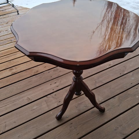 Pieniä käytön jälkiä lasissa, muuten oikein hyvä ja kaunis pöytä.