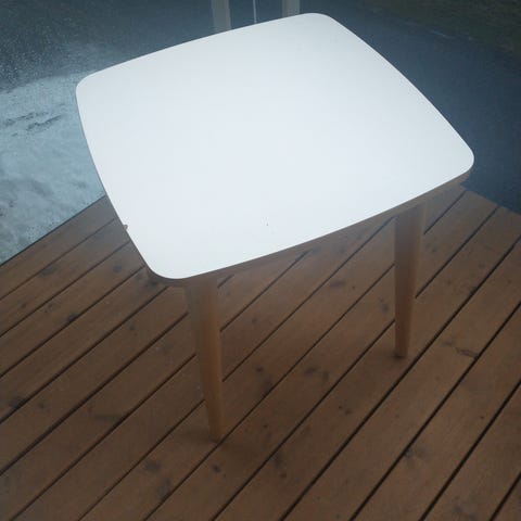 Myydään pieni metallinen pöytä. Yksi jalka vähän keikkasee, toimii täysin hyvin kun laittoi jalkoihin huopatassut.