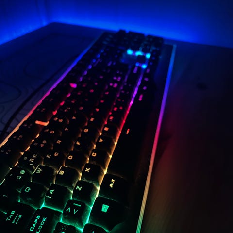 Näppäimistö on todella hyvässä kunnossa ja näppäimet juuri pesty ja toimii täysin moitteettomasti. Siinä on Cherry MX Black -kytkimet ja RGB-valaistus. Kompakti 60 % koko sopii hyvin pelaamiseen ja säästää pöytätilaa.