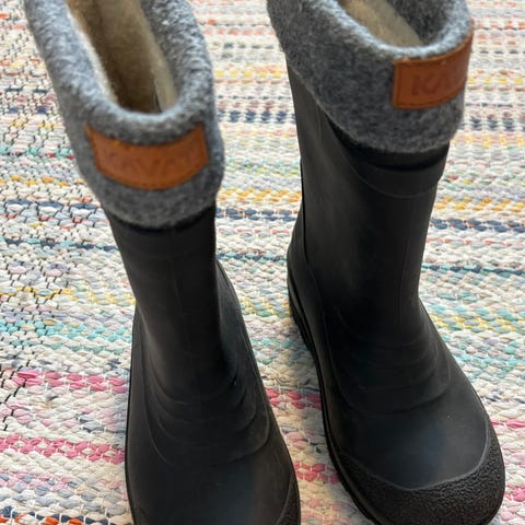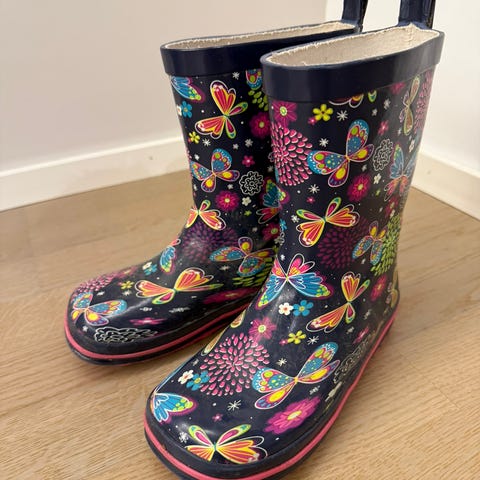Kavat lasten kumisaappaat, koko 29, unisex-malli. Saappaat ovat mustat, niissä on tähti- ja avaruusaiheisia kuvioita sekä oranssit nauhat varressa. Pohja on oranssi ja siinä on karkea kuviointi paremman pidon takaamiseksi. Varren takaosassa on heijastin- ja värilliset yksityiskohdat. Sopivat käytettäväksi sateisella ja märällä säällä arjessa ja ulkoleikeissä.