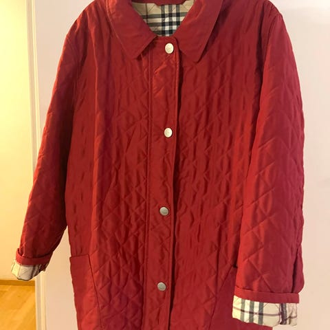 Kevyesti topattu takki koko L, Edessä napitus, sivuilla taskut. Takki sopii arki- ja kaupunkikäyttöön. Kainalosta kainaloon mitta n. 60