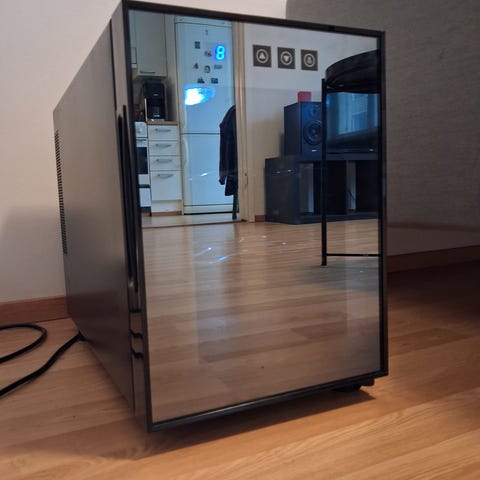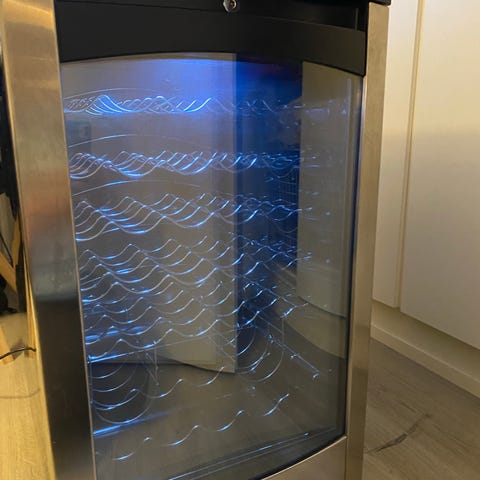 Myydään hyväkuntoinen musta valaistu viinikaappi.
