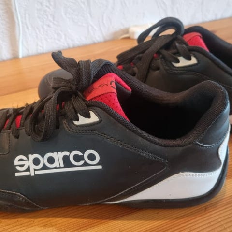 Hyväkuntoinen, siistit vapaa-ajan kengät ajohenkisellä muotoilulla. Väri musta-hopea, pohjassa punaisia yksityiskohtia. Nauhakiinnitys. Ei moitittavaa. Nouto mahdollinen Turusta.