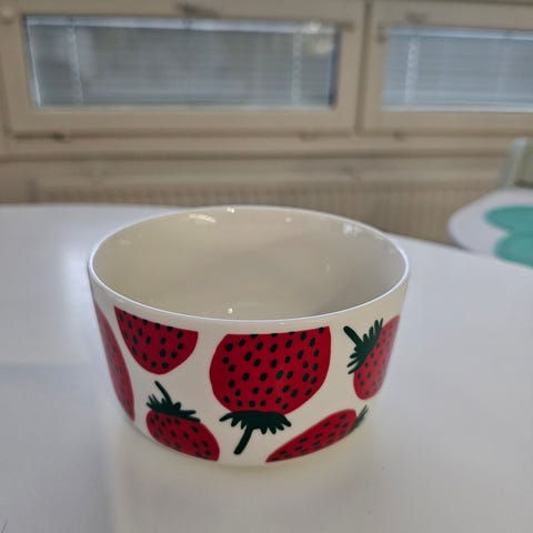 Marimekko mansikka astiat ja keittiöpyyhe
