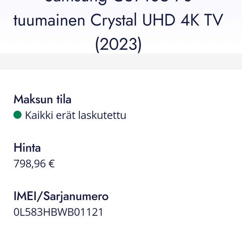 Täysin toimiva ja siistikuntoinen. Kaikki yleisimmät streamipalvelut kuten Netflix, Amazon Prime, SkyShowtime, Areena, Youtube, Apple TV toimivat täysin.