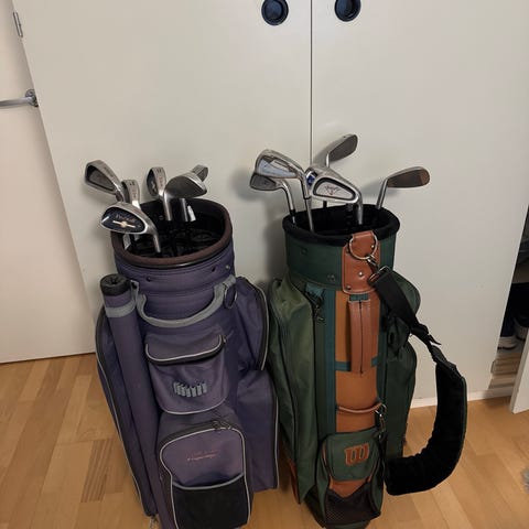 Myydään tarpeettomana RAM golfmailsetti. Raudat 5-9, P ja S sekä putteri. Lisäksi kuvassa näkyvät 3 kpl puu-/hybridi-mailaa. Kunto kohtalainen. Näillä pääsee ainakin tutustumaan golfin maailmaan.