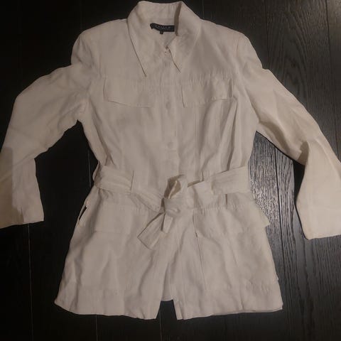 Kunto hyvä ja siisti. Mainintani tummalle pellavalle ominaista, että esim. kaula-aukon kohdalta pellava hieman patinoitunut eli haaleampia kohtia.