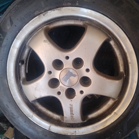 Myydään vanteet. Päällä loppuun ajetut kesärenkaat