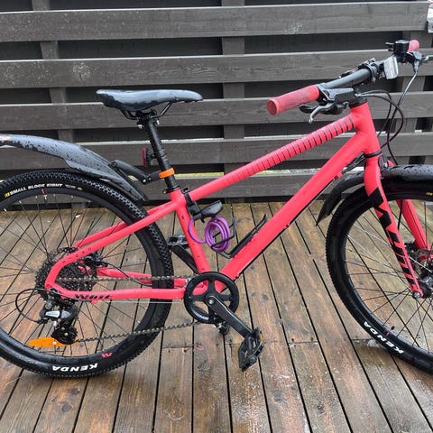 Helkama Jopo lastenpyörä 24". Pyörässä on 24 tuuman renkaat, matala runko helpottamassa kyytiin nousua, jalkajarru. Väriltään pyörä on koralli. Takana on tavarateline ja lokasuojat edessä ja takana. Lisäksi taakse asennettu Jopon oma takavalo. Soveltuu lapselle, jolle 24 tuuman rengaskoko on sopiva. Ostettu 5.4.2024, takuu/ostokuitti löytyy sähköisenä. Kaksi avainta alkuperäiseen runkolukkoon. Hinta ilmoituksessa. Nouto.