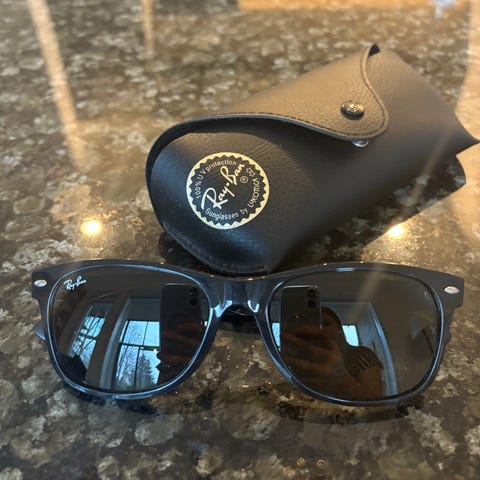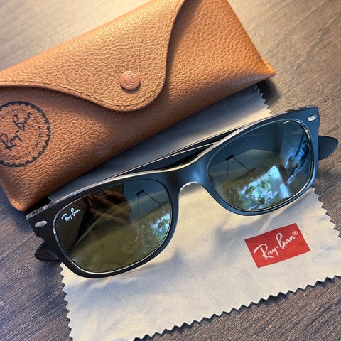 Ray-Ban Wayfarer aurinkolasit unisex-käyttöön. Kehys on tummansävyinen muovikehys ja linsseissä on tumma sävy. Malli sopii sekä miehille että naisille. Mukana tulee Ray-Ban-kova kotelo säilytystä ja kuljetusta varten.