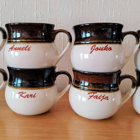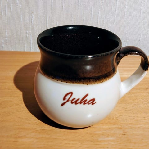 Tarjolla kuvan mukainen, ehjä ja siisti, uudenveroinen Kari Kerman Savi Heinä sarja muki
