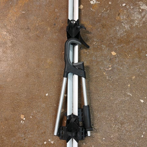 Vähälle käytölle jääneet lukittavat kattotelineet polkupyörännkuljettamiseen. Myynnissä 2 kpl, hinta yhdelle telineelle.