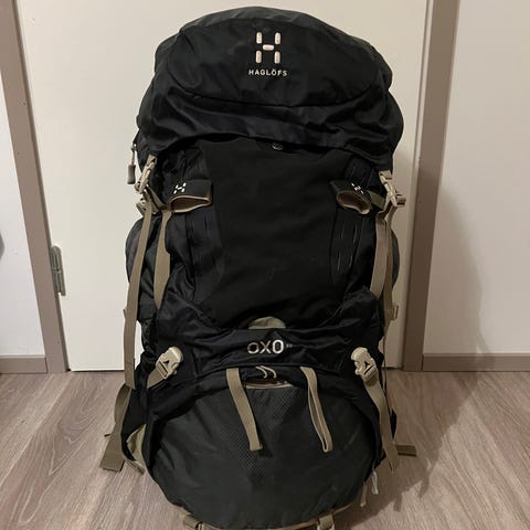 Haglöfs OXO 60Q reppu musta/beige. Vaellukseen ja retkeilyyn suunniteltu rinkka, tilavuus 60L. helposti säädettävät valjaat, joiden ansiosta repun voi säätää käyttäjälle sopivaksi. Useita kiristysremmejä ja taskuja varusteiden pakkaamiseen. Mukana tulee myös Haglöfs Raincover Medium -sadesuoja sekä Osprey Airporter -suojapussin, jotka on tarkoitettu repun ja sisällön suojaamiseen kuljetuksen ja sateen aikana. Käytetty parilla reissulla, tosi siistissä kunnossa.