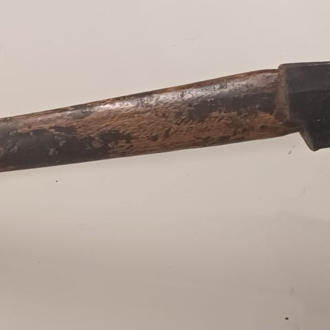 Vanha kyläsepän takoma leimakirves, lyhyellä varrella