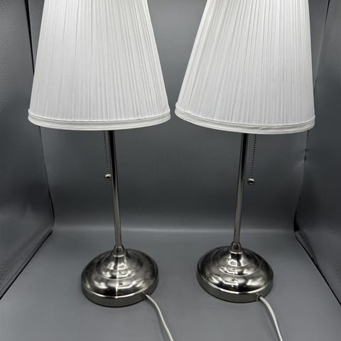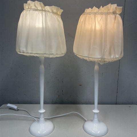 Kaksi valkoista Northlight pöytävalaisinta, joissa on kangasvarjostimet.