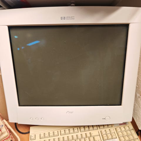 Toimiva, 19" LG:n CRT-näyttö kiinteällä VGA-kaapelilla.