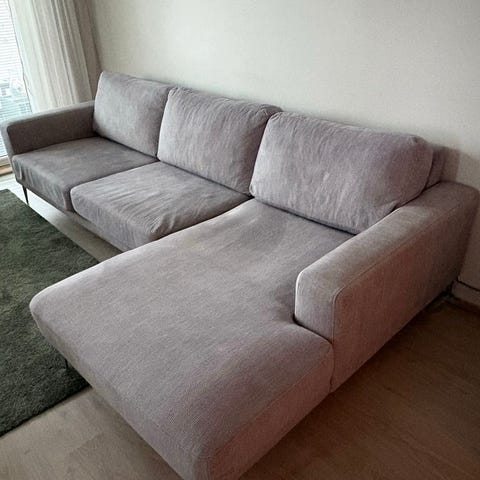 Suuri ja tilava Bellus divaanisohva siirrettävällä niskanojalla ja pestävällä kulutusta kestävällä kankaalla. Pesty. Tyynynpäälliset irrotettavat. Taloudessa ei ole ollut kotieläimiä. Kuljetus onnistuu kahdessa osassa. Nopea nouto.