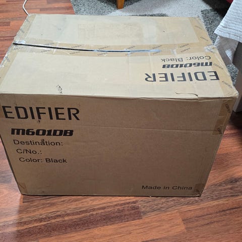 Tästä Creativen kaiuttimet tietokoneeseen tai vaikka kotiteatteriin. Mukana tulee erillinen äänenvoimakkuuden säädin.