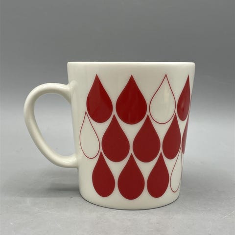 Hakusanat: arabia, muki, punainen, keramiikka, posliini, arabian, design kuppi muki kupit lautanen astiasto kahviastiasto tassi asetti lautaset kupit mukit, Paketoitava, Valmistaja, suomalainen design, veripalvelu, pisarakuvio