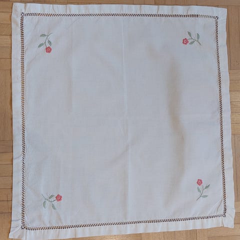 Myydään vähälle käytölle jäänyt Pentikin Purppuraomenapuu-kuosinen vahakaitaliina. Reunoja ei ommeltu.