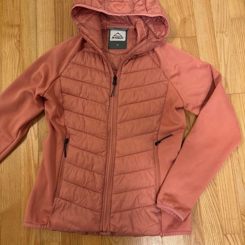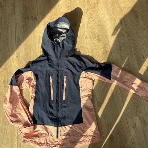 Takki uudenveroisessa kunnossa, ainoastaan selän heijastinraidassa on kulumaa.