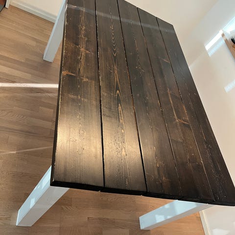Puusepän tekemä rouhea lankkupöytä. Varmaan ikuinen. Myydään koska ei mahdu enää uuteen asuntoon. 170x90, korkeus 77cm. Nouto Helsingin Puotilasta.